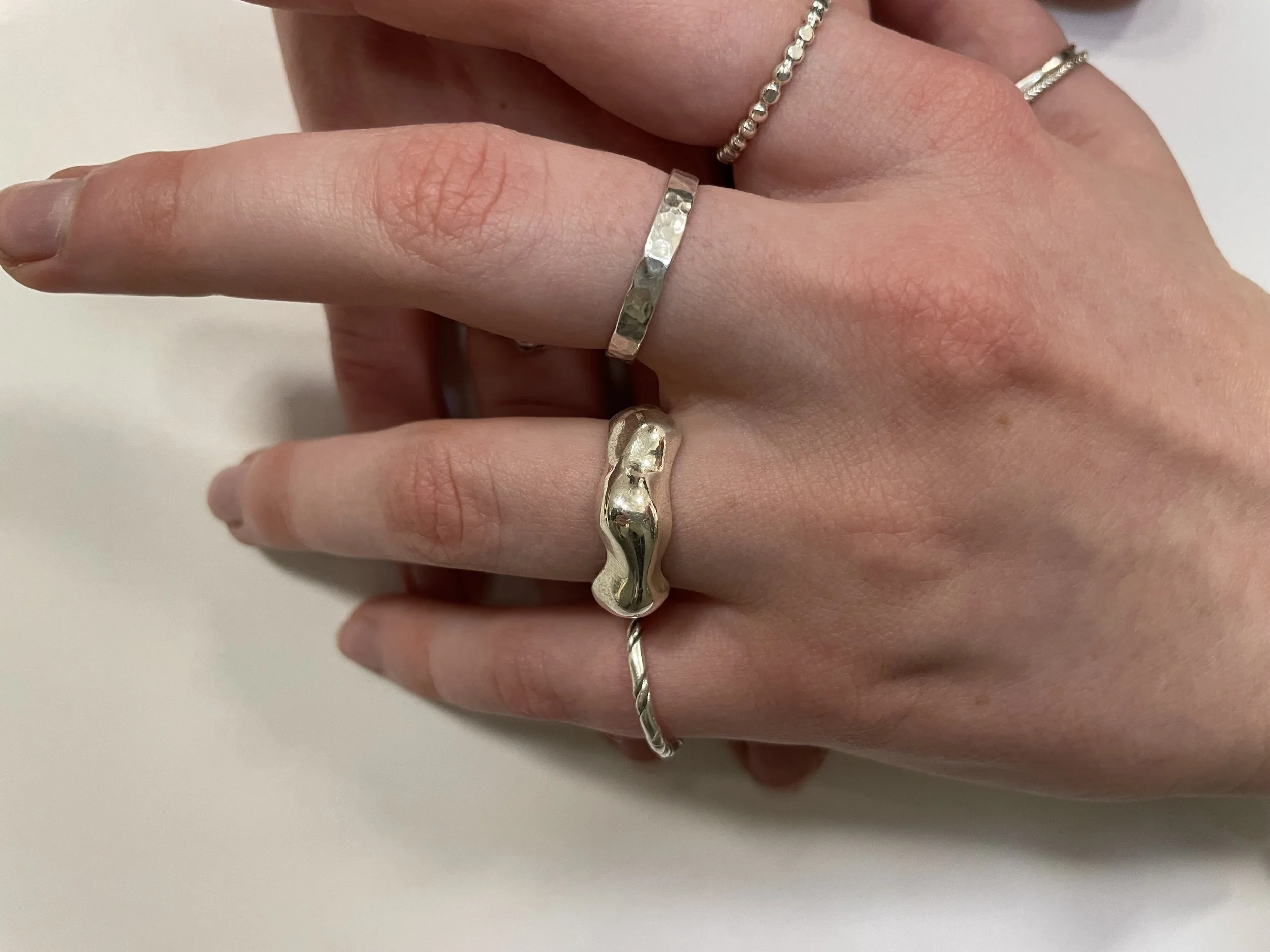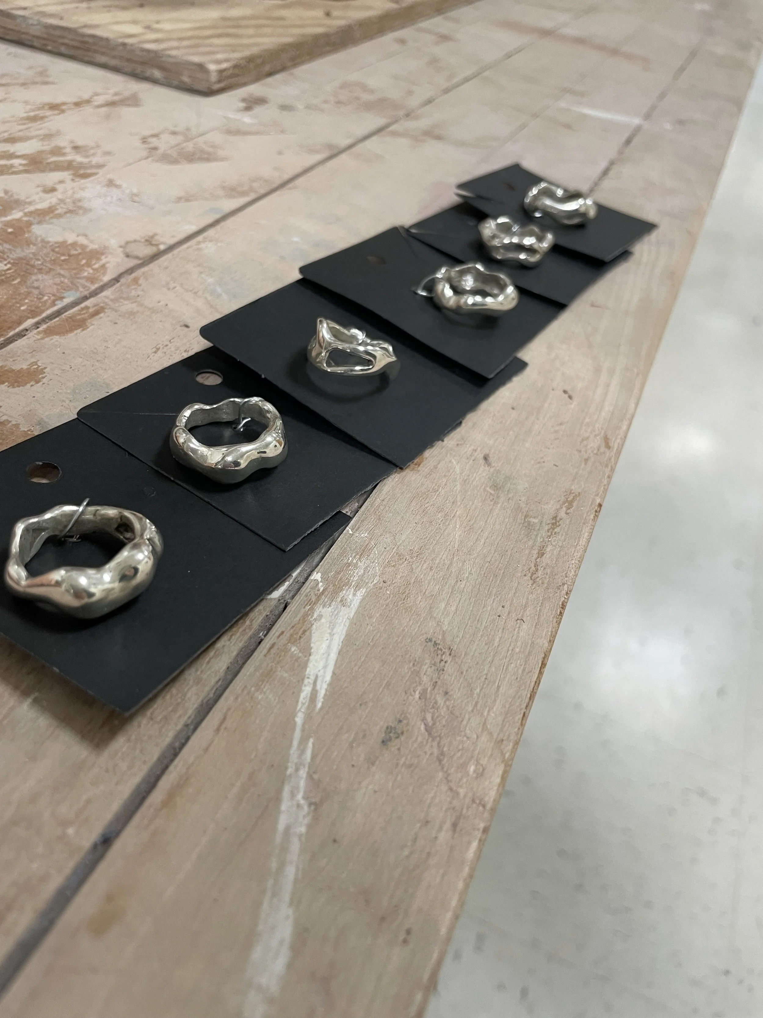 Once the designs felt solid, I moved into wax and sculpted the rings, focusing on the forms and details I wanted to capture. Those wax models were then used in the casting process to bring the final pieces to life.